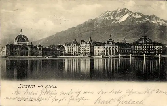 Ak Luzern Stadt Schweiz, Panorama, Häuser am Ufer, Alpen