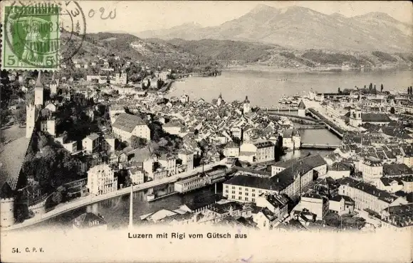 Ak Luzern Stadt Schweiz, Panorama, Rigi, Blick vom Gütsch