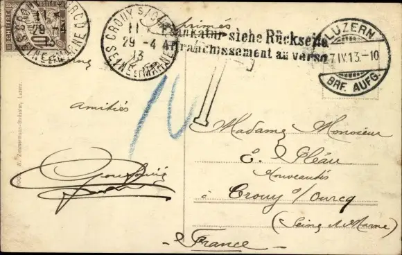 Zustand, siehe Scan, gelaufen, 1913 - ca 14 cm X 9 cm