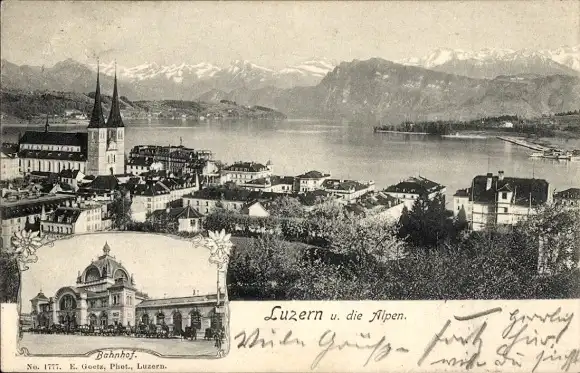 Ak Luzern Stadt Schweiz, Panorama mit Alpen, Bahnhof