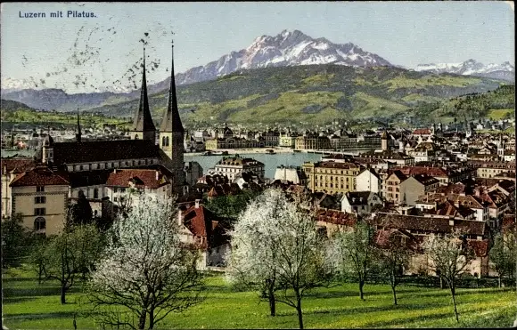 Ak Luzern Stadt Schweiz, Panorama mit Pilatus