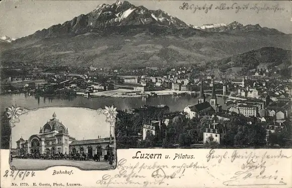 Ak Luzern Stadt Schweiz, Panorama vom Ort mit Pilatus, Bahnhof