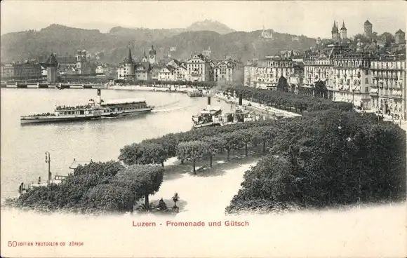 Ak Luzern Stadt Schweiz, Promenade und Gütsch