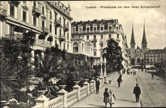 Ak Luzern Stadt Schweiz, Promenade vor dem Hotel Schweizerhof