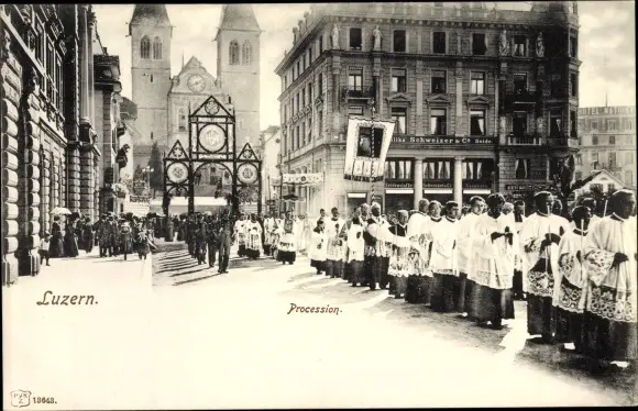 Ak Luzern Stadt Schweiz, Prozession in der Stadt, Kirche