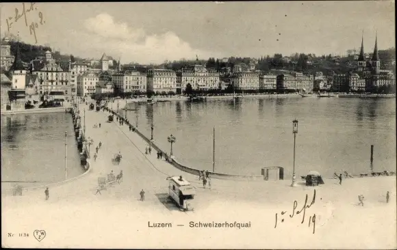 Ak Luzern Stadt Schweiz, Schweizerhofquai, Straßenbahn