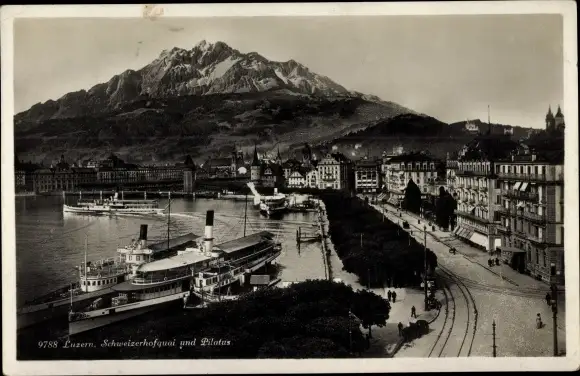 Ak Luzern Stadt Schweiz, Schweizerhofquai und Pilatus, Salondampfer
