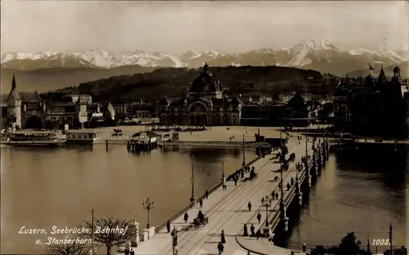 Ak Luzern Stadt Schweiz, Seebrücke, Bahnhof, Stanserhorn