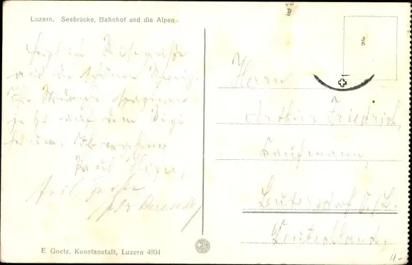 Ak Luzern Stadt Schweiz, Seebrücke, Bahnhof und die Alpen