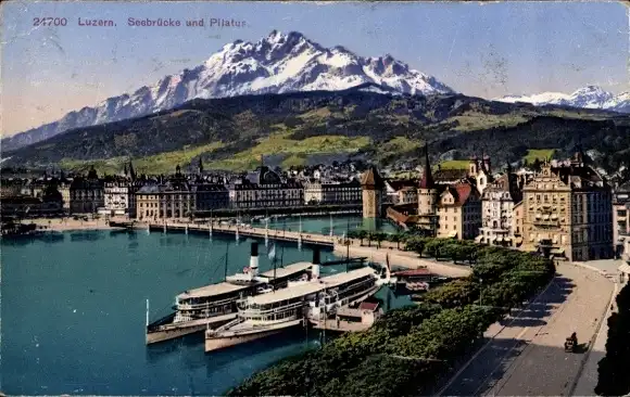 Ak Luzern Stadt Schweiz, Seebrücke, Pilatus, Dampfer