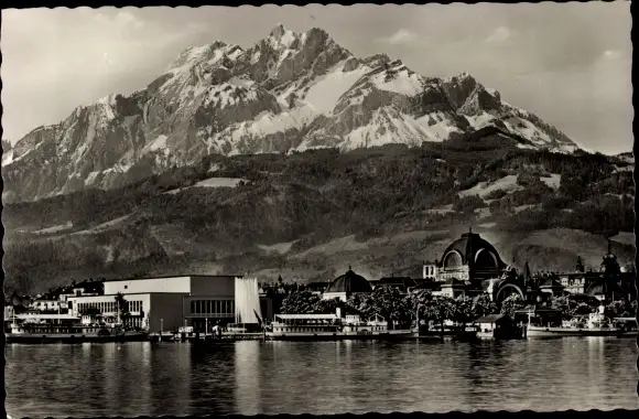 Ak Luzern Stadt Schweiz, Stadtpartie am Ufer, Pilatus