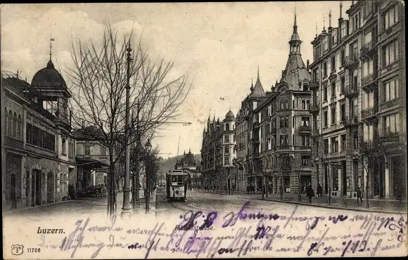 Ak Luzern Stadt Schweiz, Straßenpartie, Straßenbahn