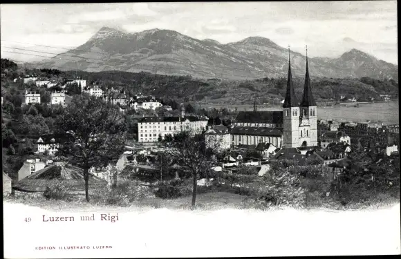 Ak Luzern Stadt Schweiz, Totalansicht mit Rigi