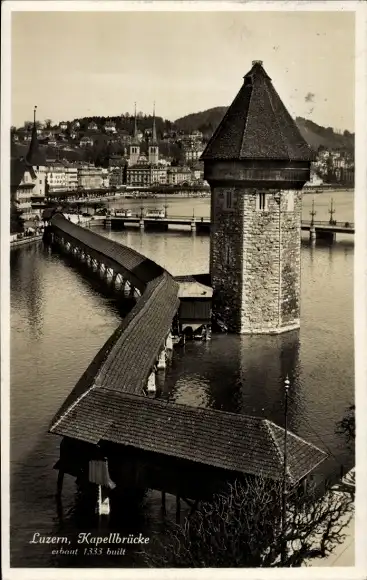 Ak Luzern Stadt Schweiz, Wasserturm, Kapellbrücke