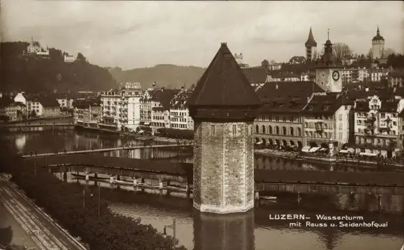 Ak Luzern Stadt Schweiz, Wasserturm, Reuss, Seidenhofquai