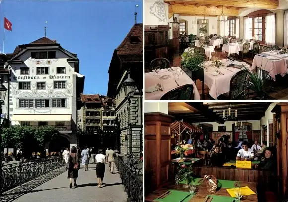 Ak Luzern Stadt Schweiz, Zunfthaus zu Pfistern, Außenansicht, Innenräume