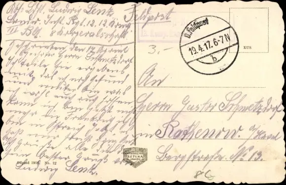 Zustand, siehe Scan, gelaufen, 1917 - ca 14 cm X 9 cm