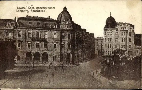 Ansichtskarte, Postkarte, Sparkasse, Kreissparkasse, Bank, Stadtsparkasse, Lemberg