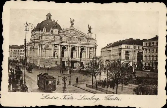 Ak Lwiw Lwów Lemberg Ukraine, Theater, Straßenbahn