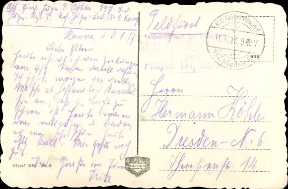 Zustand, siehe Scan, gelaufen, 1917 - ca 14 cm X 9 cm