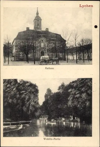 Ak Lychen in der Uckermark, Rathaus, Woblitz-Partie