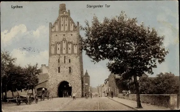 Ak Lychen in der Uckermark, Stargader Tor, Straßenpartie, Pferdefuhren