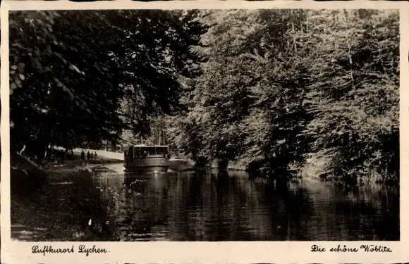 Ak Lychen in der Uckermark, Wöblitz, Wald, Schiff
