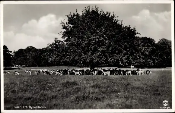 Ak Lyngby Danmark, Parti fra Dyrehaven, Rehe unterm Baum
