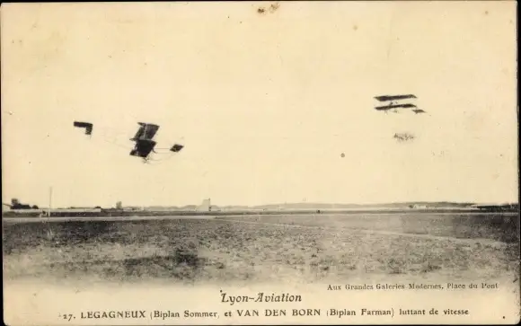 Ak Lyon Aviation, Aviateur Legagneux, Biplan Sommer, Van den Born, Biplan Farman