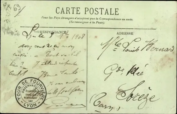 Zustand, siehe Scan, gelaufen, 1908 - ca 14 cm X 9 cm