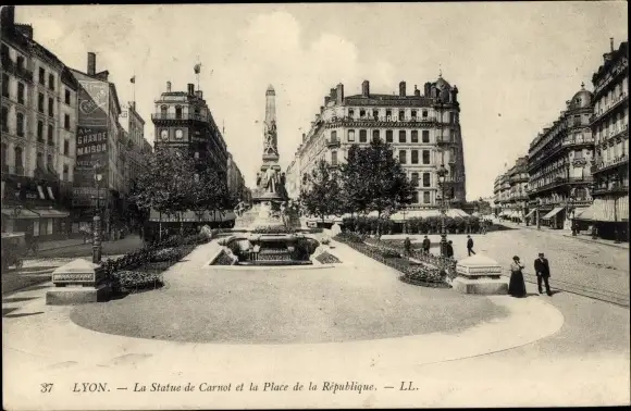 Ak Lyon Rhône, La Statue de Carnot et la Place de la Republique