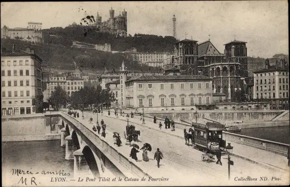 Ak Lyon Rhône, Le Pont Tilsit, Le Coteau de Fourviere