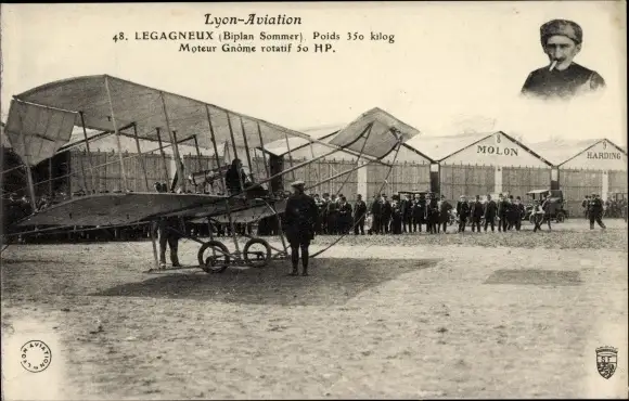 Ak Lyon Rhône, Legagneux, Biplan Sommer, Flugpionier, Flugzeug