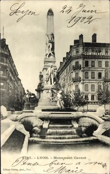 Ak Lyon Rhône, Monument Carnot