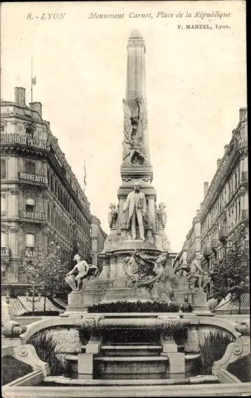 Ak Lyon Rhône, Monument Carnot, Place de la Republique