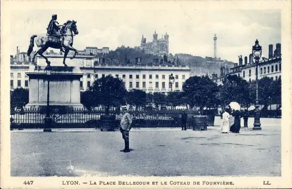 Ak Lyon Rhône, Place Bellecour, Coteau de Fourviere