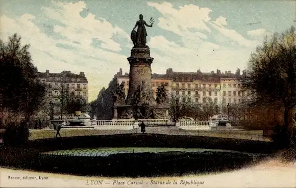 Ak Lyon Rhône, Place Carnol, Statue de la Republque