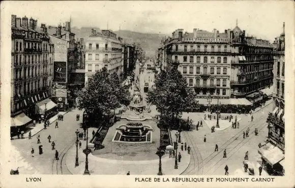 Ak Lyon Rhône, Place de la République, Carnot-Denkmal