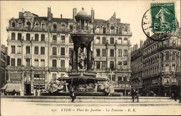 Ak Lyon Rhône, Place des Jacobins, Fontaine