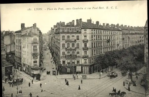 Ak Lyon Rhône, Place du Pont und Cours Gambetta, Rue Paul Bert