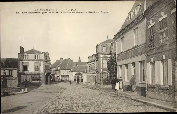 Ak Lyre Eure, Route de Rouen, Hôtel du Cygne