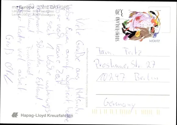Ak MS Europa, Hapag Lloyd Kreuzfahrtschiff, Passagierschiff, 37012 BRT/GRT