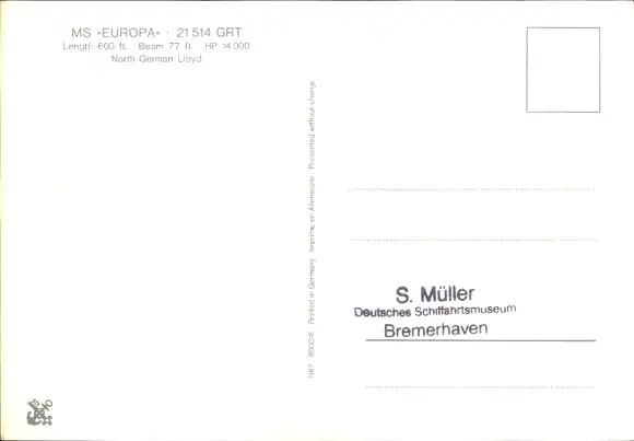 Ak MS Europa, NDL