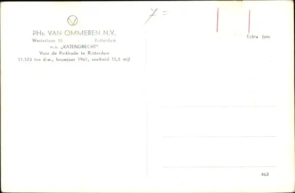 Ak MS Katendrecht, PHs. Van Ommeren N.V.