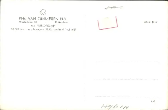 Ak MS Kieldrecht, PHs. Van Ommeren N.V.