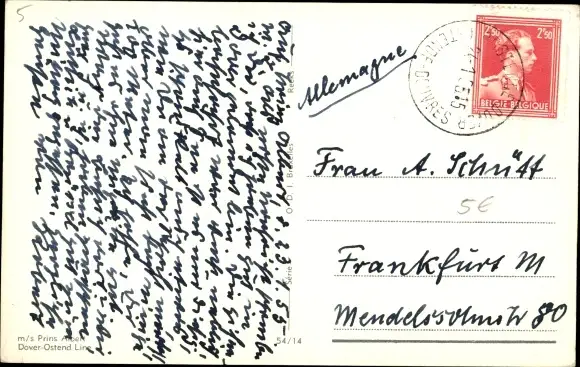 Ak M.S. Prins Albert, Dover Ostend Line, Fährschiff, Ansicht Backbord