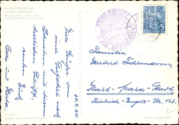 Ak MS Sassnitz, Eisenbahnfährschiff der Deutschen Reichsbahn