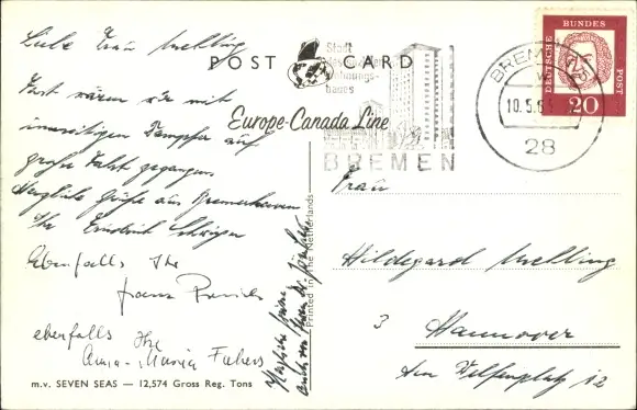 Ak MS Seven Seas, Europa Canada Linie, Dampfer