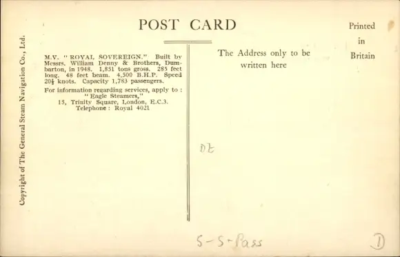 Ak M.V. Royal Sovereign, William Denny & Brothers, Dumbarton, Fährschiff