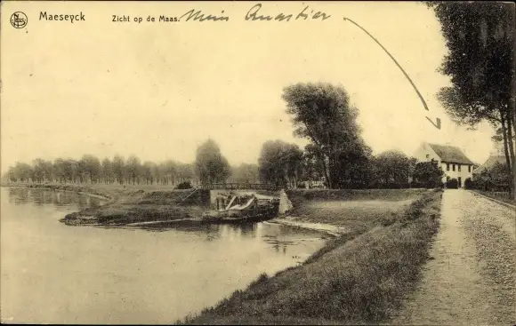 Ak Maaseik Maeseyck Flandern Limburg, Zicht op de Maas